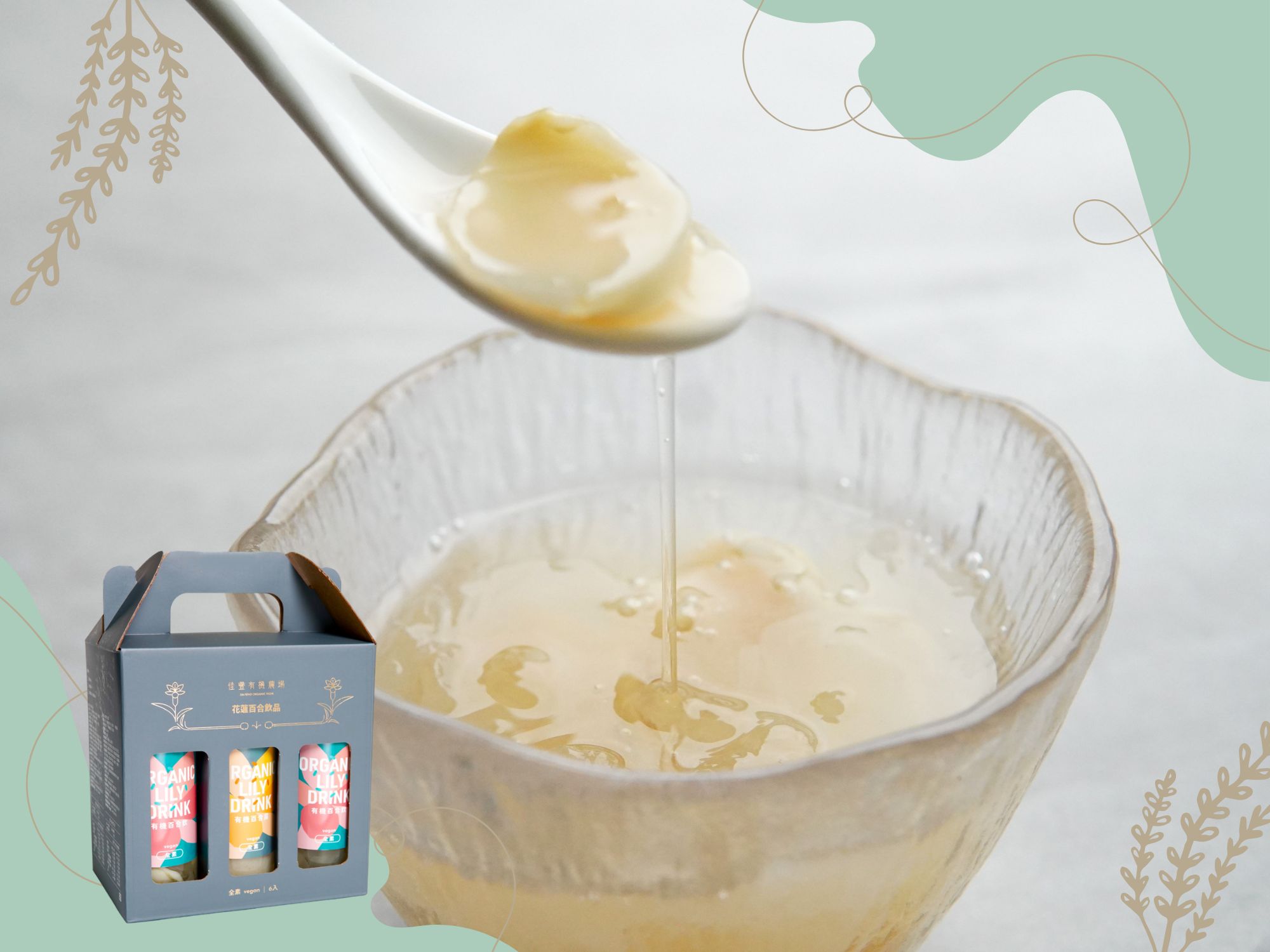 有機百合飲 | 好食整片百合 • 使用農場栽種鮮百合以及台灣新鮮銀耳製成 • 養顏美容、幫助入睡,健康維持的養生良品 • 冬季熱熱喝更美味 • 慈心認證有機食品 • 環保紙箱包裝 ( 非禮盒 ) 規格:1瓶 230 公克 / 毫升 產地:台灣 成份:水、有機鮮百合 ( 台灣 )、有機晶冰糖 ( 巴西 )、有機銀耳 ( 台灣 ) 保存方式:常溫陰涼處保存 保存期限:未開封 12 個月