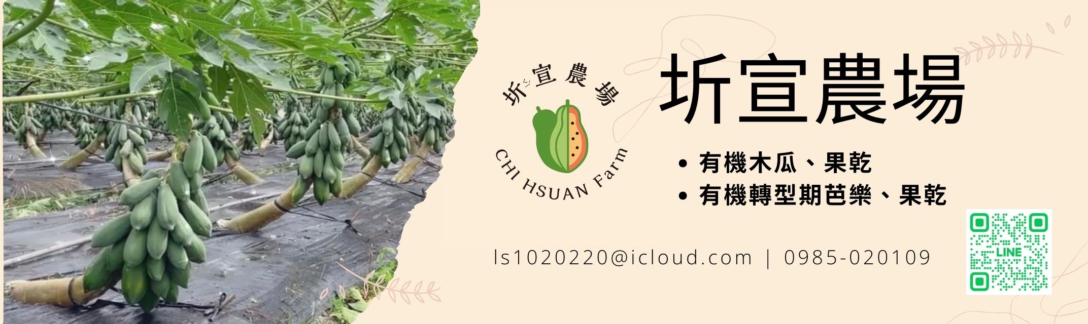 我們是來自南投埔里的「圻ㄑㄧˊ宣農場」,種植木瓜已近11年,通過有機認證,堅持提供好吃健康且有好品質的有機木瓜。我們不斷摸索、提升,追求永續經營,並與顧客保持良好關係。除了木瓜和芭樂,我們還種植其他農作物,歡迎追蹤我們的FB或LINE,了解最新訊息。我們提供新鮮有機木瓜、芭樂,以及有機木瓜、芭樂鮮果乾,讓您享受健康美味的有機水果。