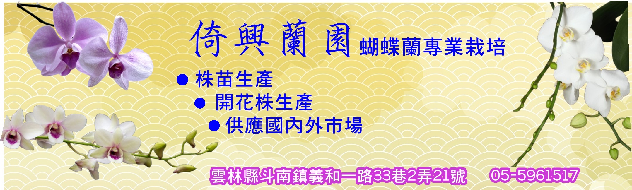 倚興企業(倚興蘭園)以專業栽培蝴蝶蘭為主要經營特色,擁有廣大的栽培面積和先進的設施,能夠全年生產高品質的株苗和開花株。 我們的產能豐足,已成功外銷至美國、日本、東南亞、非洲等國家,品質備受肯定。 無論是國內還是國外客戶,我們都能滿足您對品質和數量的需求, 歡迎洽詢我們,讓倚興蘭園成為您信賴的合作夥伴!
