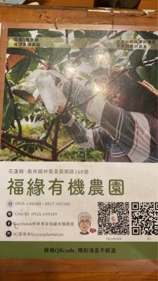 福緣有機農場位於花蓮縣鳳林鎮榮開路 168 號,由大方花園小木屋民宿主人以細心與熱情所經營。農場以 有機芭樂為主要作物,在純淨的花東縱谷環境中,自然生長、無毒栽培,讓旅人與消費者都能安心品嘗健康果實。 除了自家食用外,農場更提供 民宿旅客親自採果的田園體驗,讓入住的遊客在山風徐徐的果園裡感受土地的香氣與採收的樂趣。少量產出的芭樂與其他作物,也提供給民眾預訂,讓喜愛自然風味的人們能將花蓮的純粹帶回家。 福緣有機農場以真誠、友善的方式耕作,希望將大地的祝福分享給每一位旅人。**聯絡電話:**03-8772555(邱小姐)
