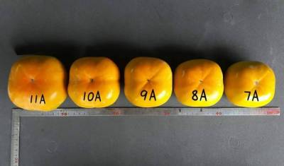 常見的甜柿大小分級:7A、8A、9A、10A、11A